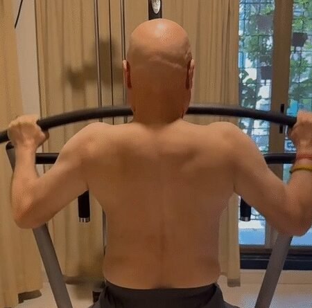 In the clip, the veteran actor is seen posing with his back towards the camera as he works on his back and chest during the workout. He also added Shankar Mahadevan’s Shiv Tandav Stotram as background score for the video.