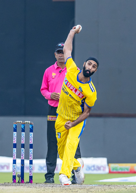 Skipper Anuj Rawat and Sujal Singh attempted to mount a fightback, stitching together a 52-run stand that briefly lifted hopes for the Riders. Rawat, however, fell for 23 off 26, caught by Aaryavir Sehwag off Simarjeet, who continued to wreak havoc. Sujal played a spirited hand of 39 off 25, but with wickets tumbling around him, he too perished to Grewal, who finished with superb figures of 2/7 in 3 overs, including two maidens.