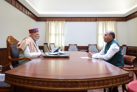 New Delhi, July 28 (IANS) With the loss pegged at over Rs 1,200 crore, former Himachal Pradesh Chief Minister Jairam Thakur on Monday met Prime Minister Narendra Modi and apprised him of the damage caused in disaster-affected areas of the state while seeking an “area-specific’ relief package for rehabilitation.