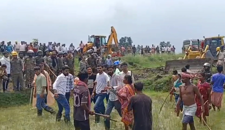 The situation turned volatile when a team from SAIL arrived at the site with five to six JCB machines for demarcation and leveling work on the acquired land.