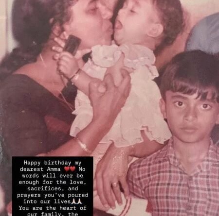 Taking to the stories section of her Instagram handle, Nayanthara posted a throwback photo from her childhood, where her mother was seen giving a peck on the actress’s cheek while her brother, Lenu Kurian, stood next to them.