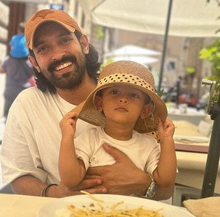 Mumbai, June 7 (IANS) Actor Vikrant Massey, who is currently holidaying in Naples, Italy with his family, shared a picture of him busy doing “monkey business” with his son Vardaan.